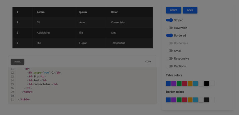Use the MDBootstrap table generator to create custom HTML tables in seconds.